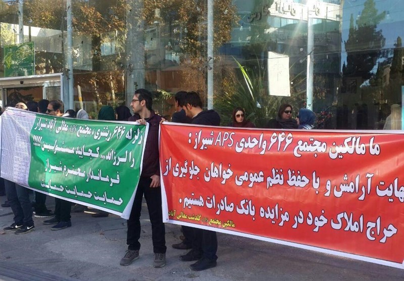 به گزارش خبرگزاری تسنیم از شیراز، صبح امروز مالکان یک مجتمع مسکونی در شیراز که به دلیل بدهی شرکت اماراتی و بدعهدی شرکت عمران و بهسازی در آستانه بی‌خانمان شدن هستند، در مقابل اداره راه و شهرسازی استان فارس تجمع کردند.