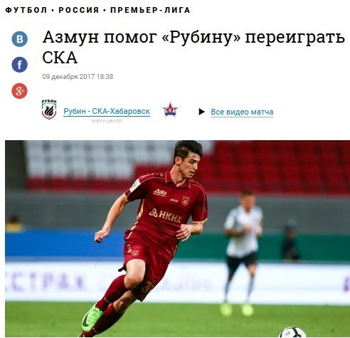 سایت اسپورت باکس روسیه با انتشار تصویری از ملیپوش ایرانی نوشت: سردار آزمون به روبینکازان کمک کرد تا بر خاباروفسک فائق آید.
