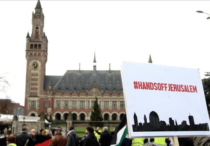 گروهی از تظاهرات کنندگان نیز با تجمع در مقابل ساختمان دادگاه بین المللی کیفری در شهر لاهه پارچه نوشته هایی را حمل می کردند که روی آنها نوشته شده بود: دستان خود را از بیت المقدس بیرون بکشید، بیت المقدس پایتخت فلسطین است.