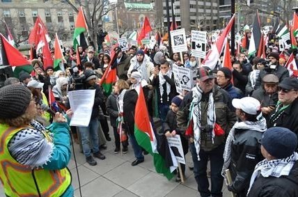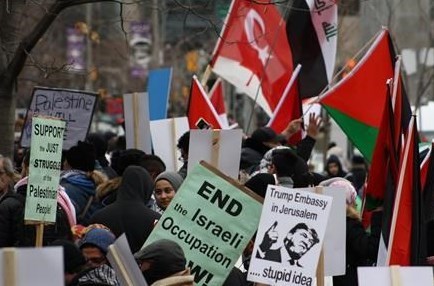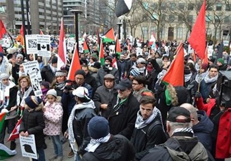 به گزارش گروه بینالملل خبرگزاری تسنیم، روز گذشته بیش از هزار نفر مقابل کنسولگری آمریکا در تورنتو تجمع و به تصمیم ترامپ مبنی بر موافقت با انتقال پایتخت رژیم صهیونیستی به بیت المقدس اعتراض کردند. افراد حاضر در این تجمع از تمامی ادیان از قبیل مسیحی، یهودی، مسلمان و مذاهب دیگر شعار " دستتان را از قدس/ بیت المقدس کوتاه کنید" سر دادند. به اعتقاد این افراد تمصم آمریکا مبنی بر موافقت با تغییر سفارت آمریکا به قدس اشغالی عواقب سختی به همراه خواهد داشت.