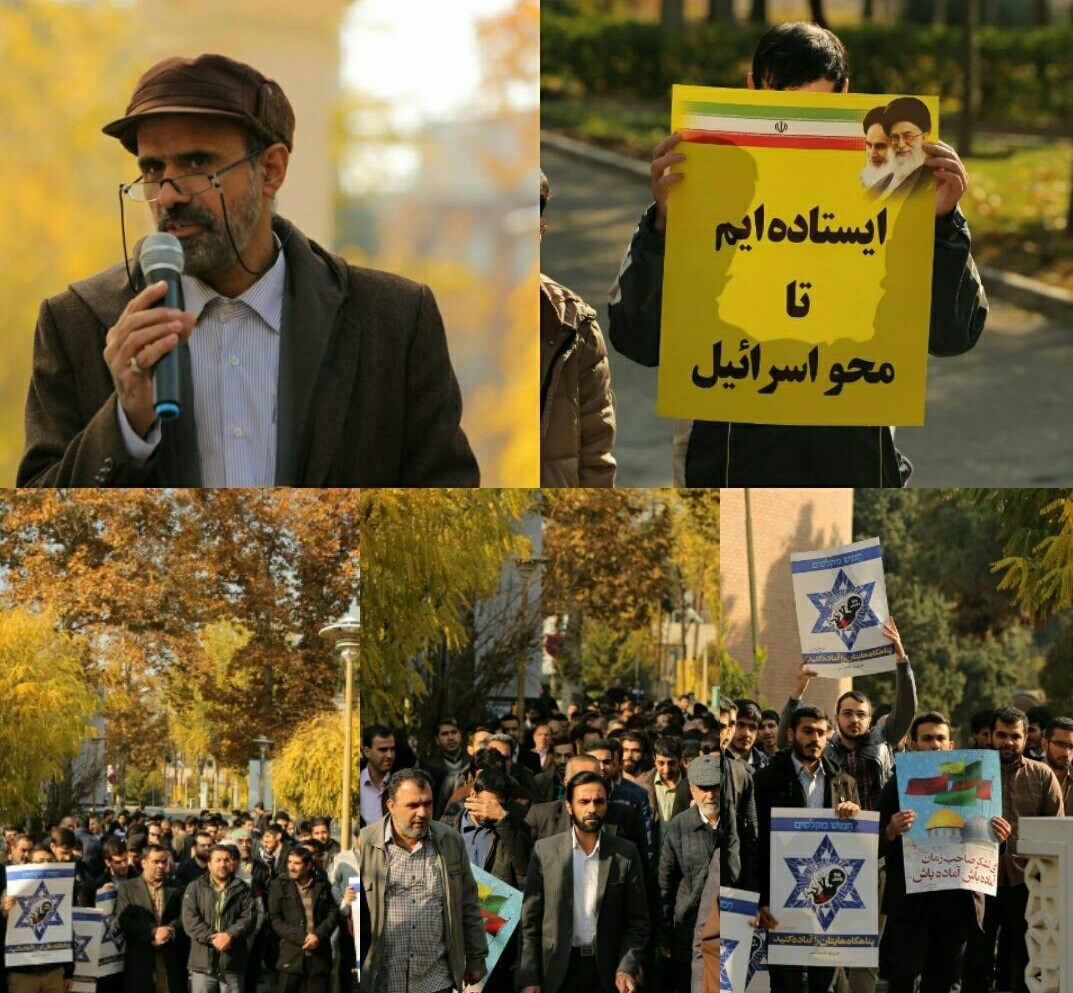دانشگاهیان این دانشگاه با حضور مقابل مقبره شهدای گمنام با سردادن شعارهایی چون  "مرگ بر اسرائیل، مرگ بر آمریکا" و به آتش کشیدن پرچم آمریکا و رژیم صهیونیستی نفرت خود را این اقدام نشان دادند.