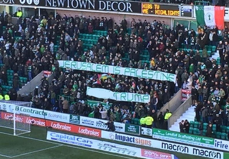 هواداران سلتیک بنری را با این عنوان که «قدس، فلسطین است» به ورزشگاه آورده بودند و واکنش خود به اظهارات اخیر رئیس جمهور آمریکا را نشان دادند.