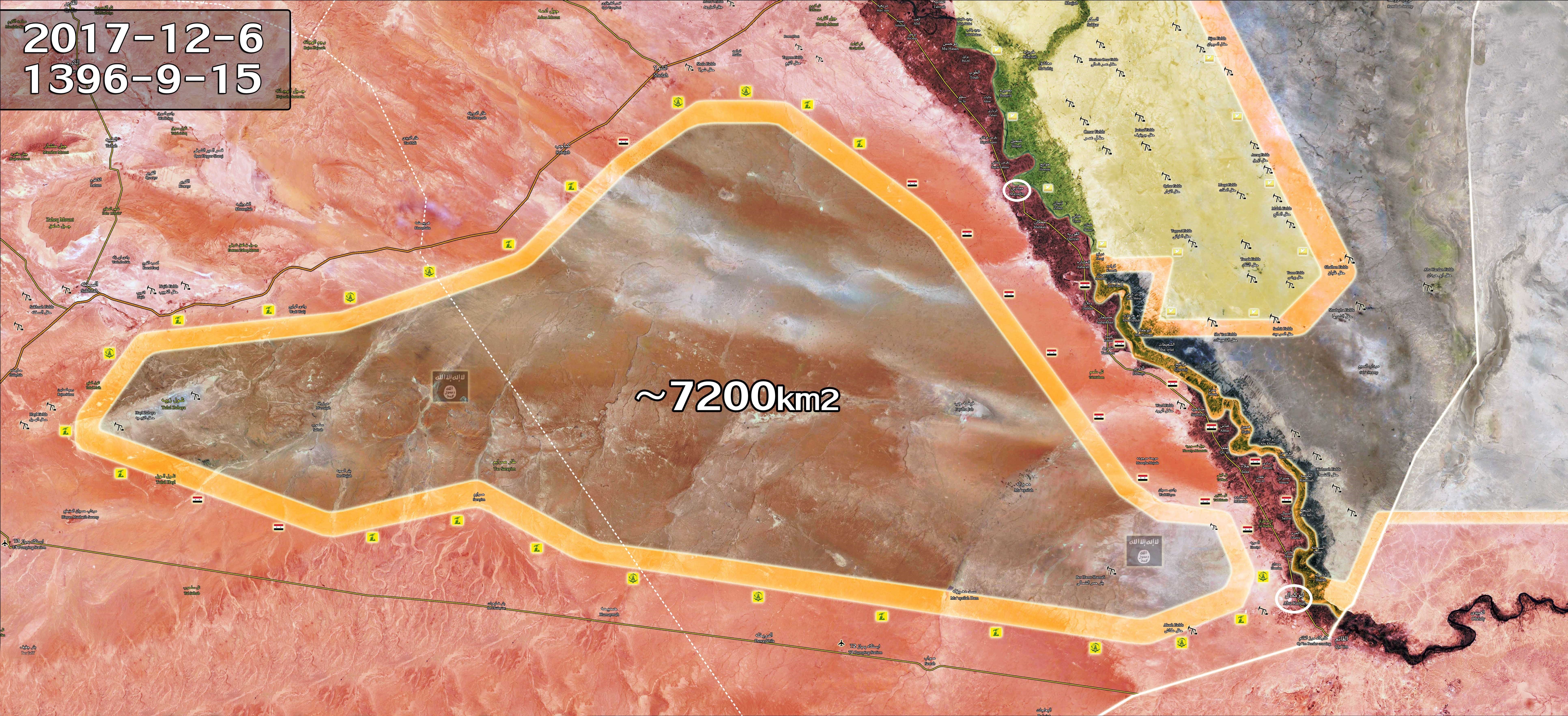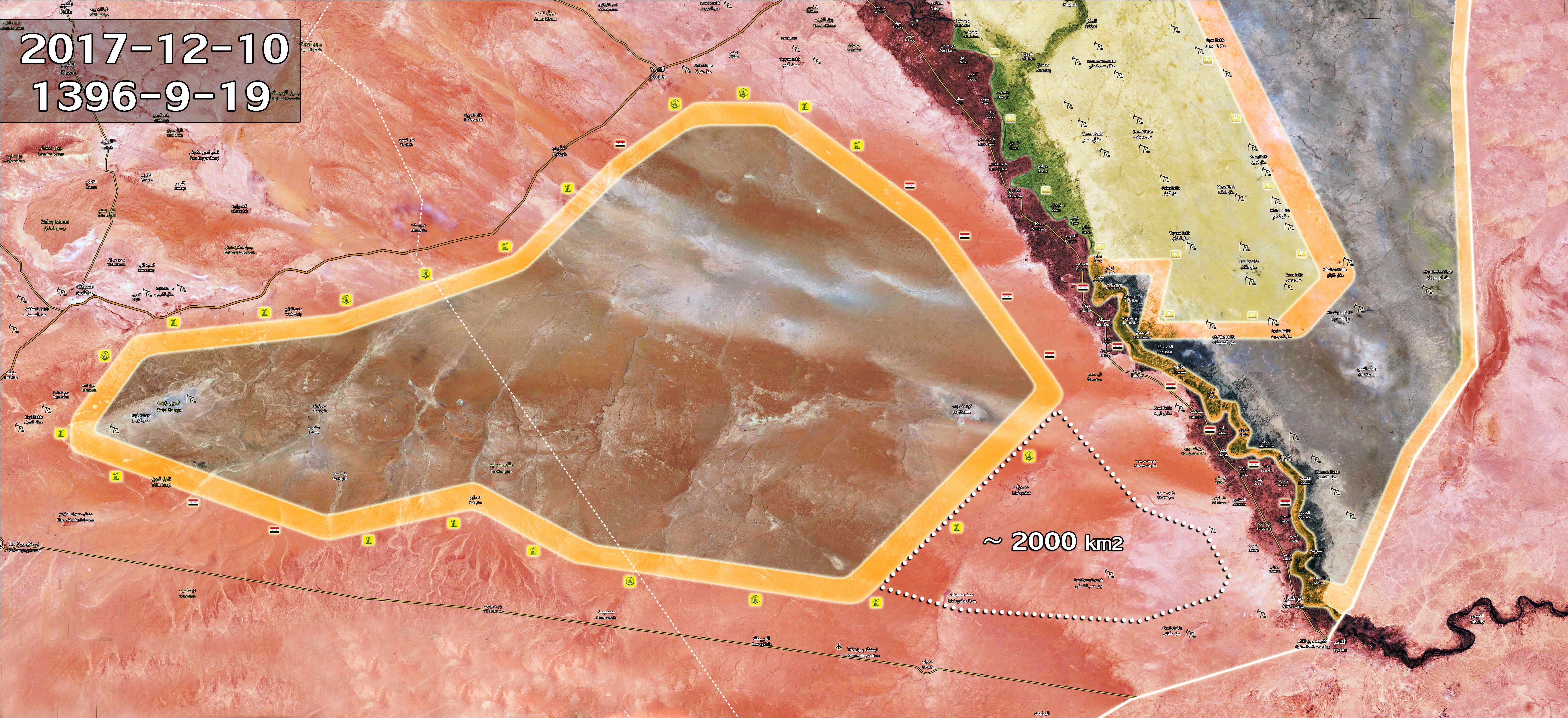 به گزارش خبرنگار فرهنگی باشگاه خبرنگاران پویا، نیروهای جبهه مقاومت اسلامی (لشکر فاطمیون و حزبالله) و ارتش سوریه موفق شدند؛ حدود 2000 کیلومتر مربع از مساحت بیابانهای جنوبی استان دیرالزور را از لوث تروریستهای تکفیری آزاد کنند. این موفقیت پس از آن صورت گرفت که نیروهای حاضر در منطقه مرزی تیدو (T2) به سمت شمال و سد معیزله پیشروی کرده و نیروهای دیگر از محور شمالی با پیشروی به سمت معیزله به یکدیگر رسیدند و با پاکسازی مناطق محاصره شده حدود 2000 کیلومتر مربع را آزاد کردند.