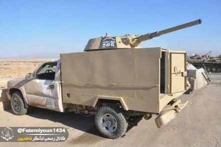 تصویر زیر مربوط به خودروی مجهز شده به برجک نفربر بی ام پی-1 متعلق به تروریستهای داعش که در محور «المیادین - البوکمال» توسط رزمندگان فاطمیون کشف و ضبط شد.