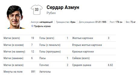 این ملی‌پوش ایرانی به رغم بازی کمتر نسبت به سردار آزمون (روبین‌کازان) و میلاد محمدی (احمد گروژنی) نمره فنی بهتری از آنها دریافت کرده است.