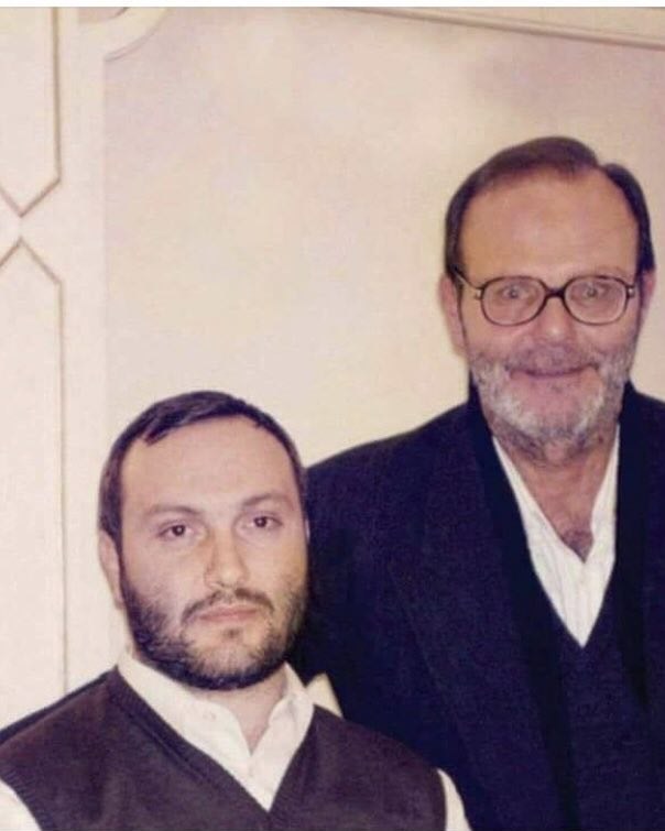 از چپ شهید عماد مغنیه و پدرش فائز مغنیه