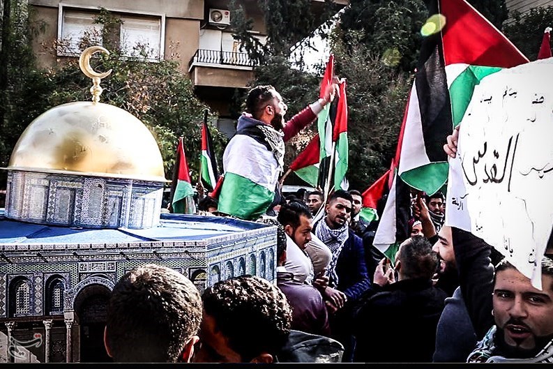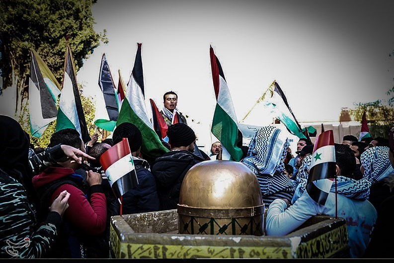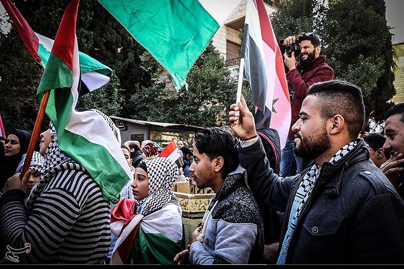 «فتحینظام»، خبرنگار خبرگزاری تسنیم، دمشق : فریادها و شعارهایی که صدها جوان فلسطینی و سوری در مقابل دفتر سازمان ملل در پایتخت سوریه-دمشق- در اعتراض به ترامپ سردادند که قدس را به عنوان پایتخت رژیم صهیونیستی به رسمیت شناخت، فریادها و شعارهایی که فلسطینیهای داخل(مناطق فلسطینینشین) را اعلام انتفاضه بزرگ در برابر اشغالگران دعوت کرده است، آنها تاکید کردند قدس پایتخت ابدی و همیشگی فلسطین است.