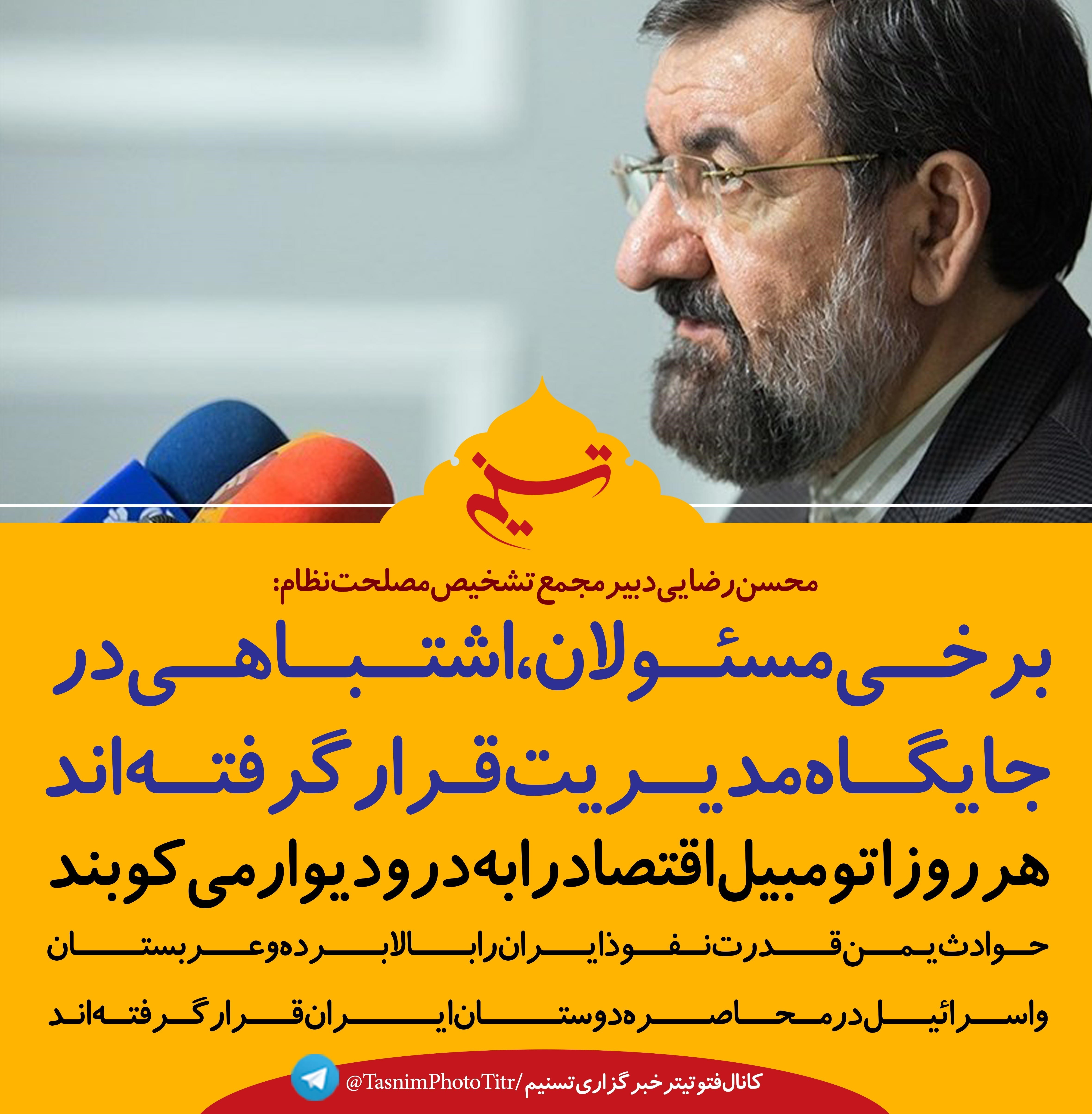 فتوتیتر/محسن رضایی:برخی مسئولان ، اشتباهی در جایگاه مدیریت قرار گرفته اند