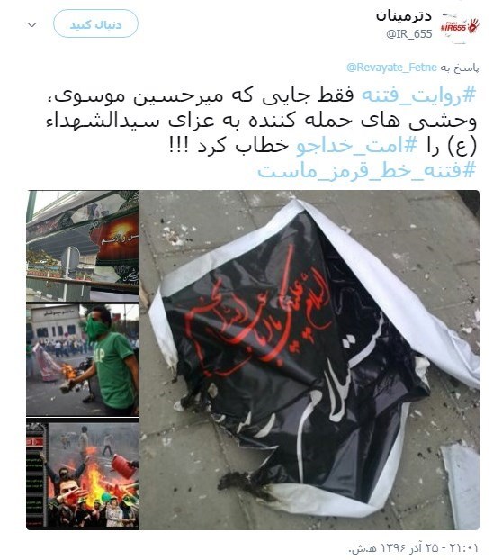روایت فتنه فقط جایی که میرحسین موسوی وحشیهای حمله کننده به عزای سیدالشهدا(ع) را امت خداجو خطاب کرد!!