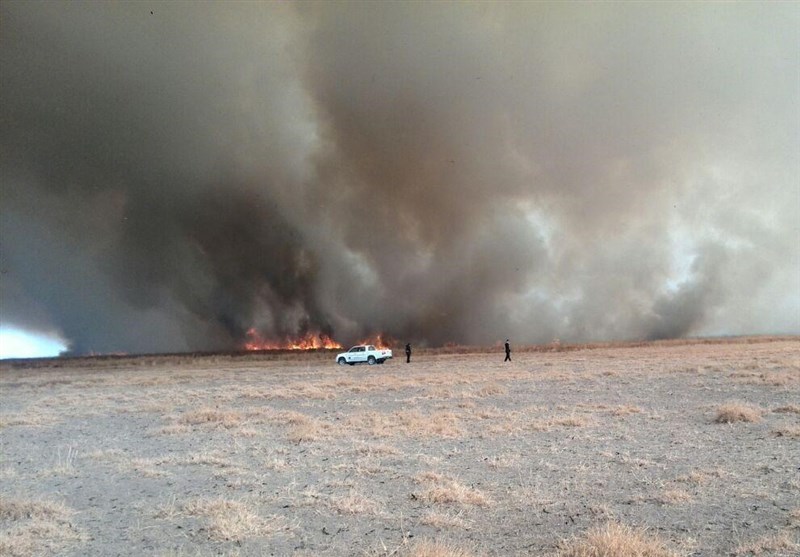 بیش از چهار هکتار از منطقه تالاب میقان گرفتار حریق شد