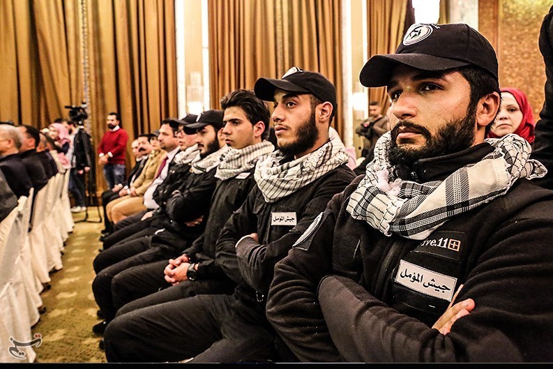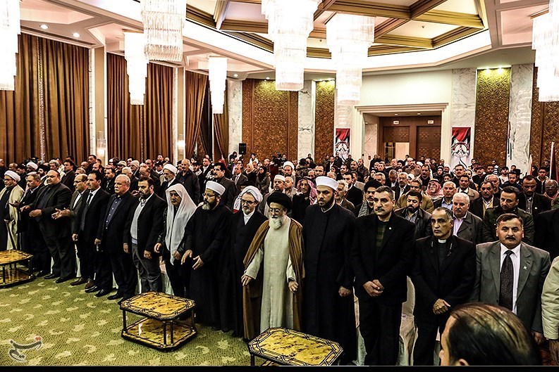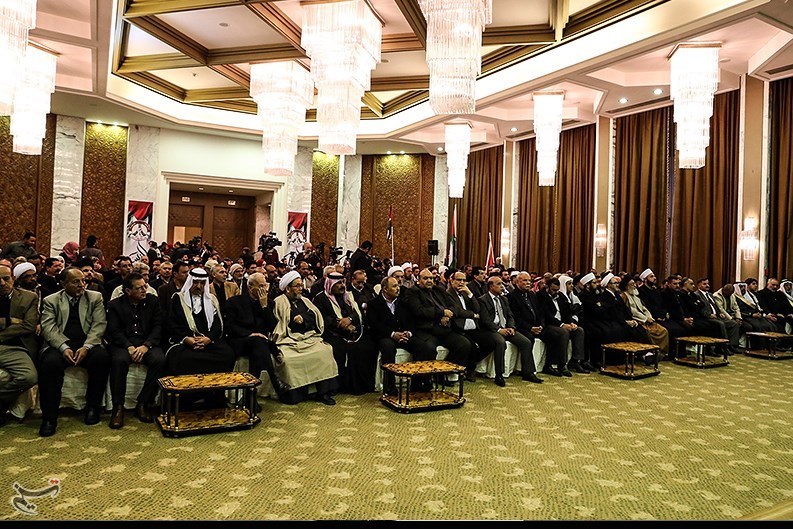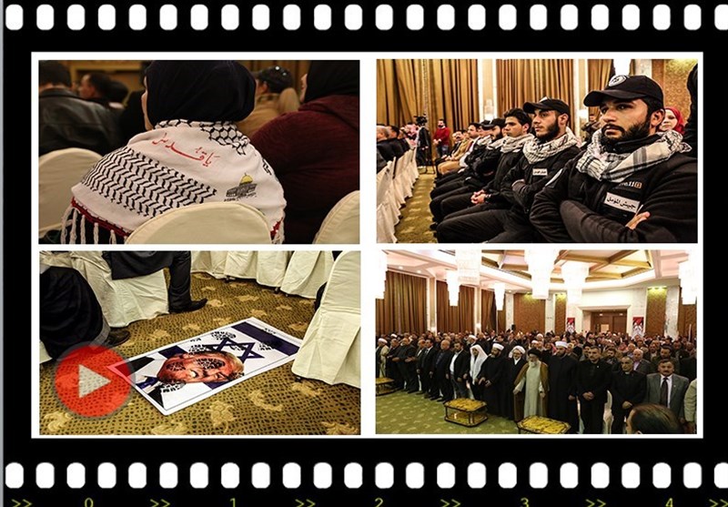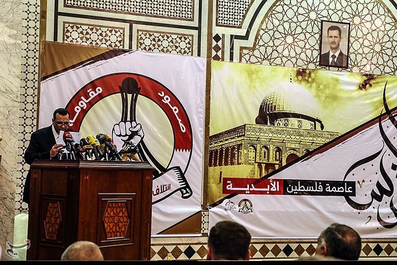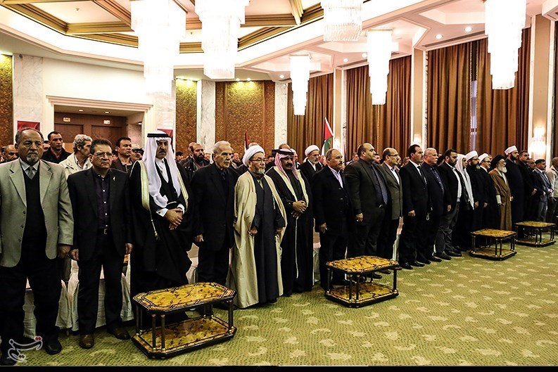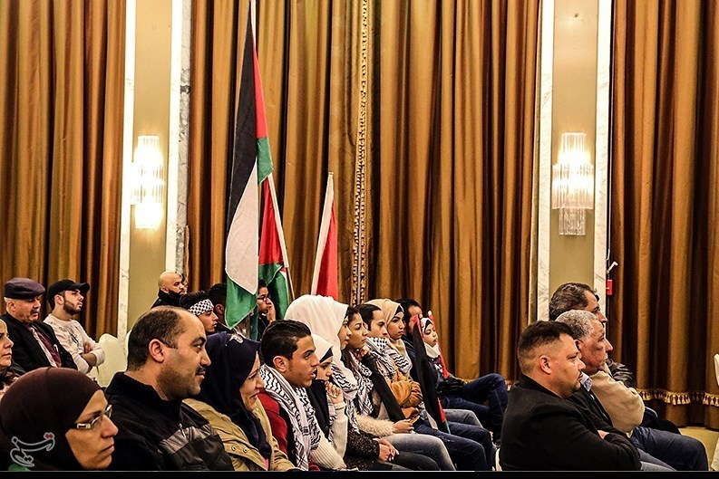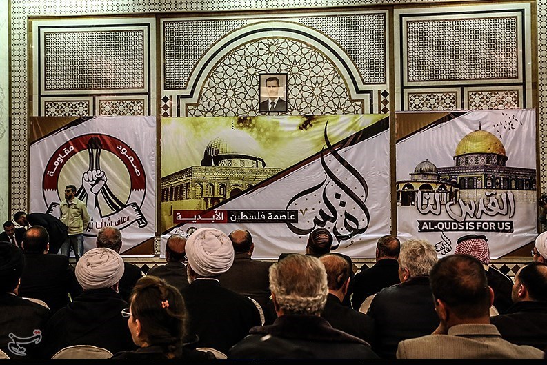 غصون الماضی، خبرنگار خبرگزاری تسنیم، دمشق: این مراسم با نواخته شدن سرود ملی جمهوری عربی سوریه، سرود ملی فلسطین و سرود ملی بحرین آغاز شد تا بر همبستگی ملتهای این کشورها و انسجام و اتحاد آنها در حمایت از مسئله فلسطین و مسائل ملتهای مظلوم در هر نقطه از جهان تأکید شود.
