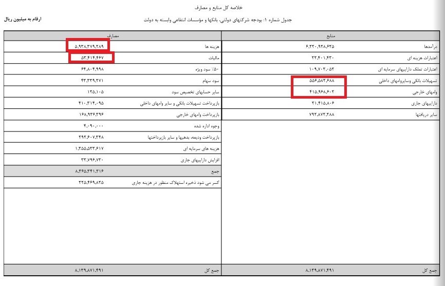 بر مبنای جدول زیر کل مالیات وصولی از شرکتهای دولتی حدود 5هزار میلیارد تومان میباشد.