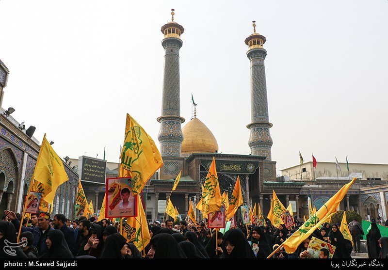 پیکر شهیدان حسینعلی رحیمی، مهدی غلامی، فتحالله محمدی از لشکر فاطمیون و شهیدان واجد علی و عقیل احمد از تیپ زینبیون بر دوش مردم همیشه درصحنه قم تشییع و بعد از اقامه نماز میت در حرم مطهر حضرت معصومه(س) برای خاکسپاری به قطعه 31 گلزار شهدای مدافع حرم بهشت معصومه(س) منتقل میشوند.