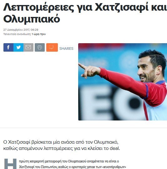 در ادامه این خبر آمده است: اولین خرید زمستانی المپیاکوس در فصل نقلوانتقالات ماه ژانویه اروپا احسان حاجصفی است و به نظر میرسد سفید و قرمز پوشان آتنی میخواهند آن را نهایی شده بدانند.