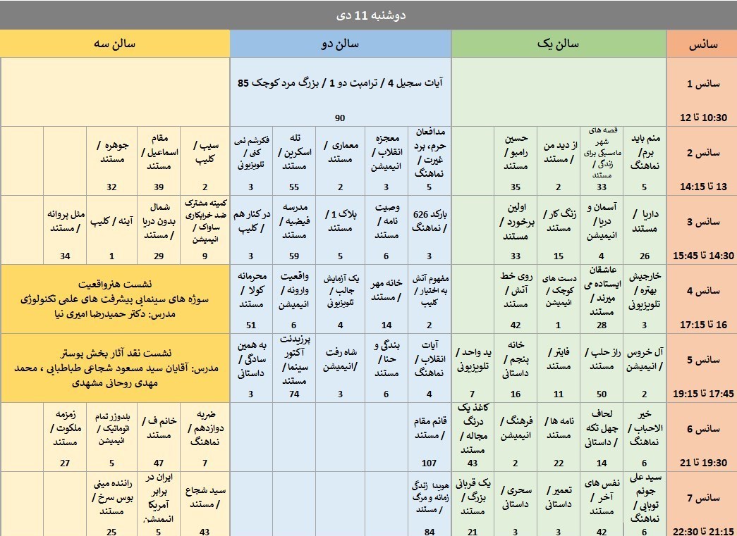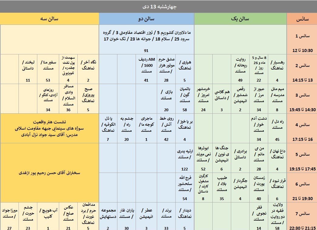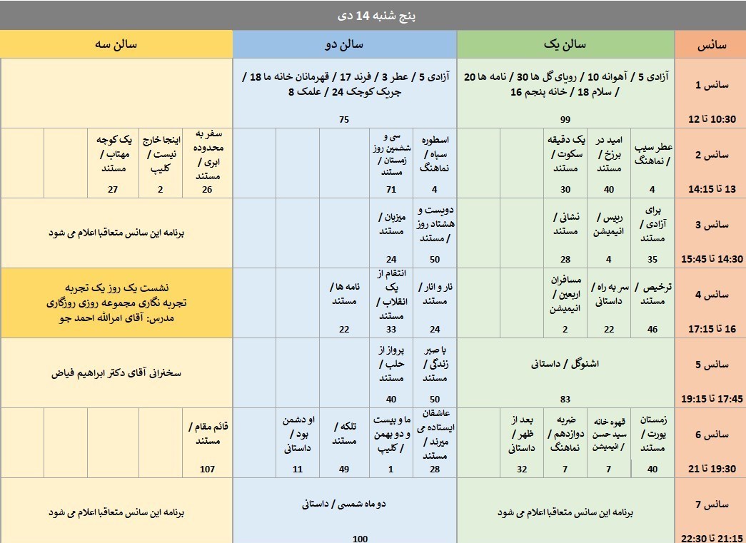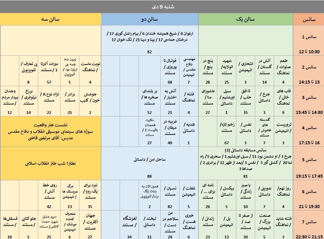 به گزارش باشگاه خبرنگاران پویا، دبیرخانه جشنواره مردمی فیلم عمار جدول روزانه اکران فیلم‌های این جشنواره در سینما فلسطین تهران را اعلام کرد.