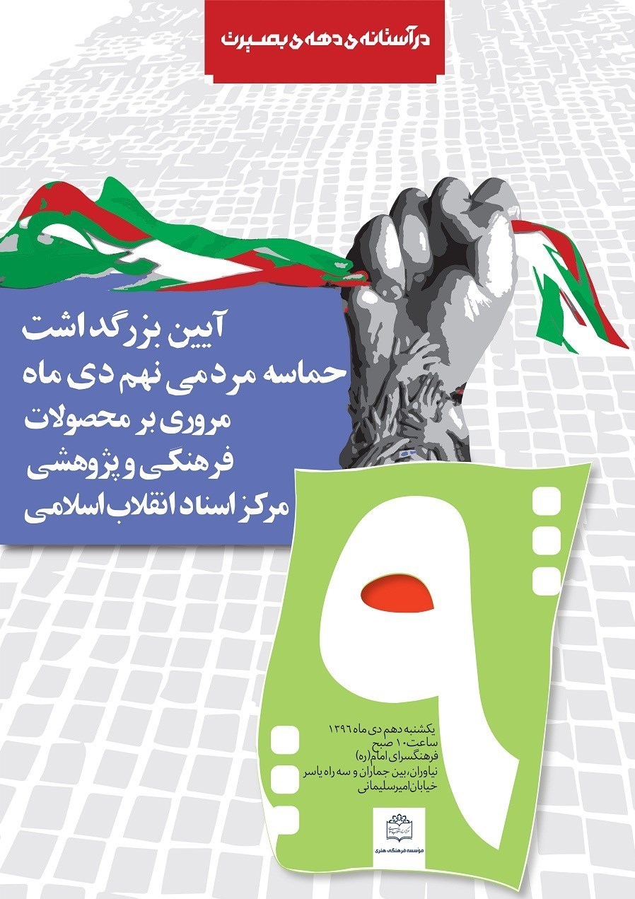 به گزارش حوزه احزاب خبرگزاری تسنیم،  آئین بزرگداشت حماسه مردمی نهم دی ماه، مروری بر محصولات فرهنگی و پژوهشی مرکز اسناد انقلاب اسلامی با حضور سیدعزت الله ضرغامی رئیس اسبق سازمان صداوسیما و حجت‌الاسلام  روح‌الله حسینیان رئیس مرکز اسناد انقلاب اسلامی برگزار می‌شود.