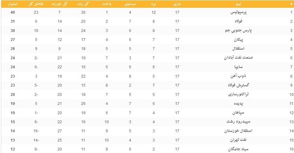 نتایج کامل مسابقات هفته هفدهم لیگ برتر فوتبال بهشرح زیر است: