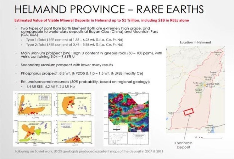 بر اساس برآوردها تنها در ولایت «هلمند» افغانستان ذخایر معدنی به ارزش بیش از یک تریلیون دلار وجود دارد