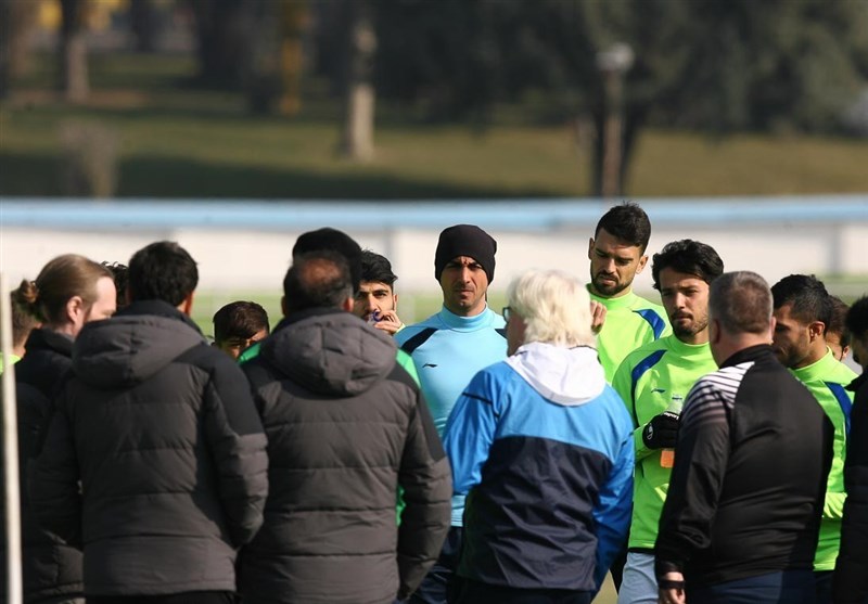* بازیکنان ابتدا خودشان را زیر نظر سانیاک گرم کرده و سپس به مرور کارهای تاکتیکی پرداختند.