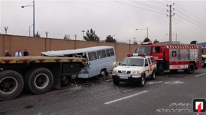علی کاظمی؛ رئیس ایستگاه 111 آتشنشانی تهران درباره جزئیات این حادثه اظهار کرد: یک دستگاه مینیبوس در مسیر شرق به غرب بزرگراه فتح و در خط کندرو در حال حرکت بود که ناگهان با قسمت عقب یک دستگاه تریلی که در حاشیه بزرگراه متوقف بود، به شدت برخورد کرد و بر اثر آن راننده مینیبوس به شدت مجروح شد.