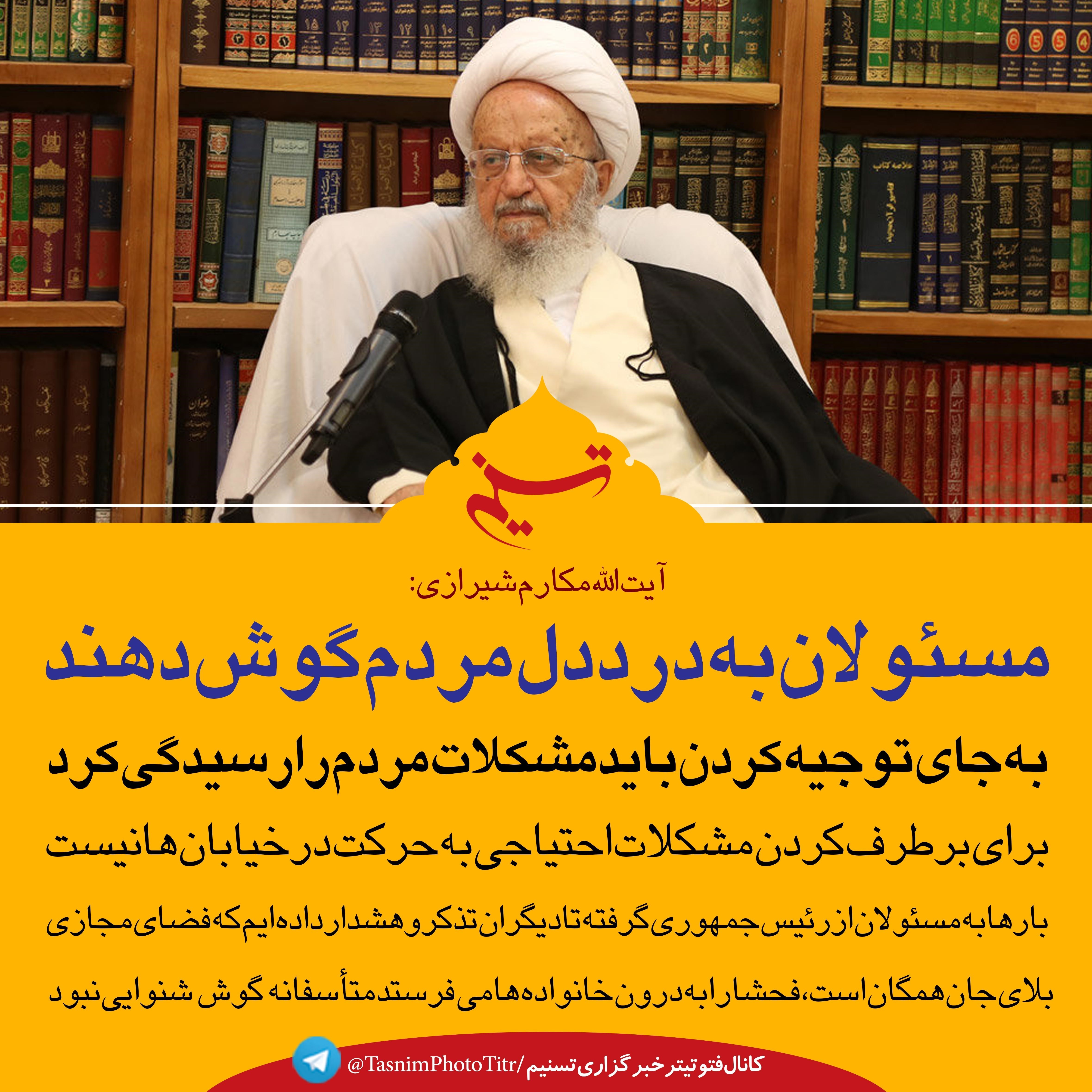 فتوتیتر/ آیت الله مکارم شیرازی :مسئولان به درد دل مردم گوش دهند