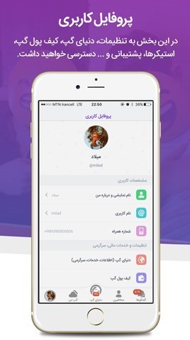 این پیامرسان که شعارش "فراتر از ارتباط" است، بستری برای چتهای دو نفره، کسب درآمد، تبادل عکس و ویدئو، اطلاعات و خدمات است.