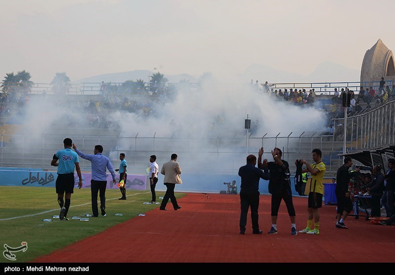 در حالیکه دروازه بان تیم گسترش فولاد تبریز بر روی زمین افتاده بود عزیز معبودی با استوک به پشت دروازه بان زد که باعث مصدومیت دروازه بان شد.