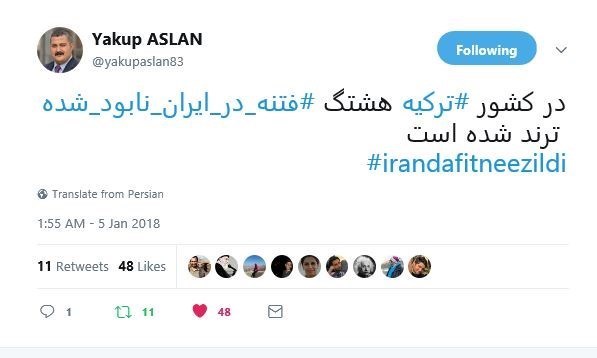 حتی در شبکه‌های اجتماعی ترکیه نیز از هشتگ "irandafitneezildi" (فتنه در ایران نابود شد) استفاده کردند که به‌سرعت ترند شد.