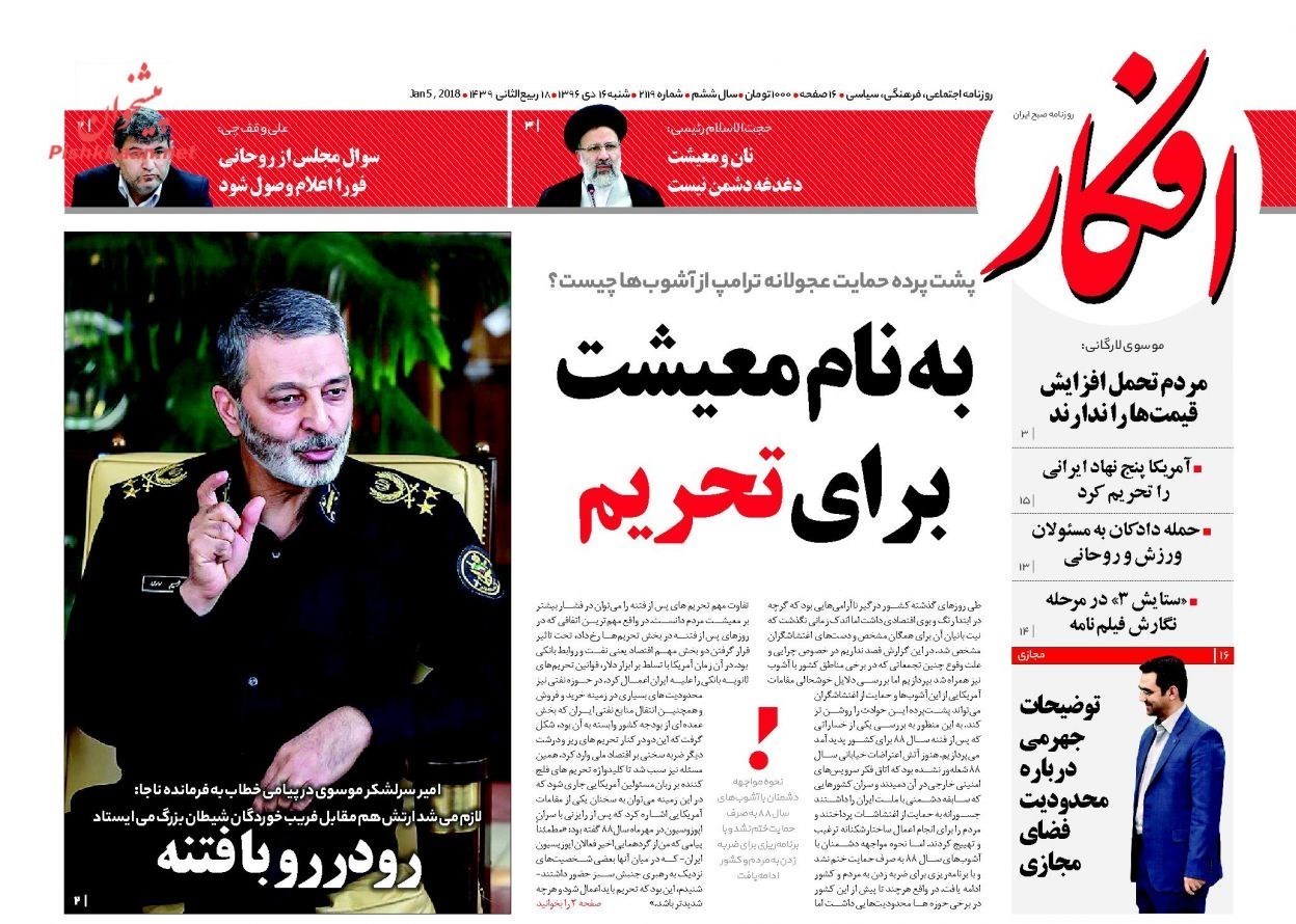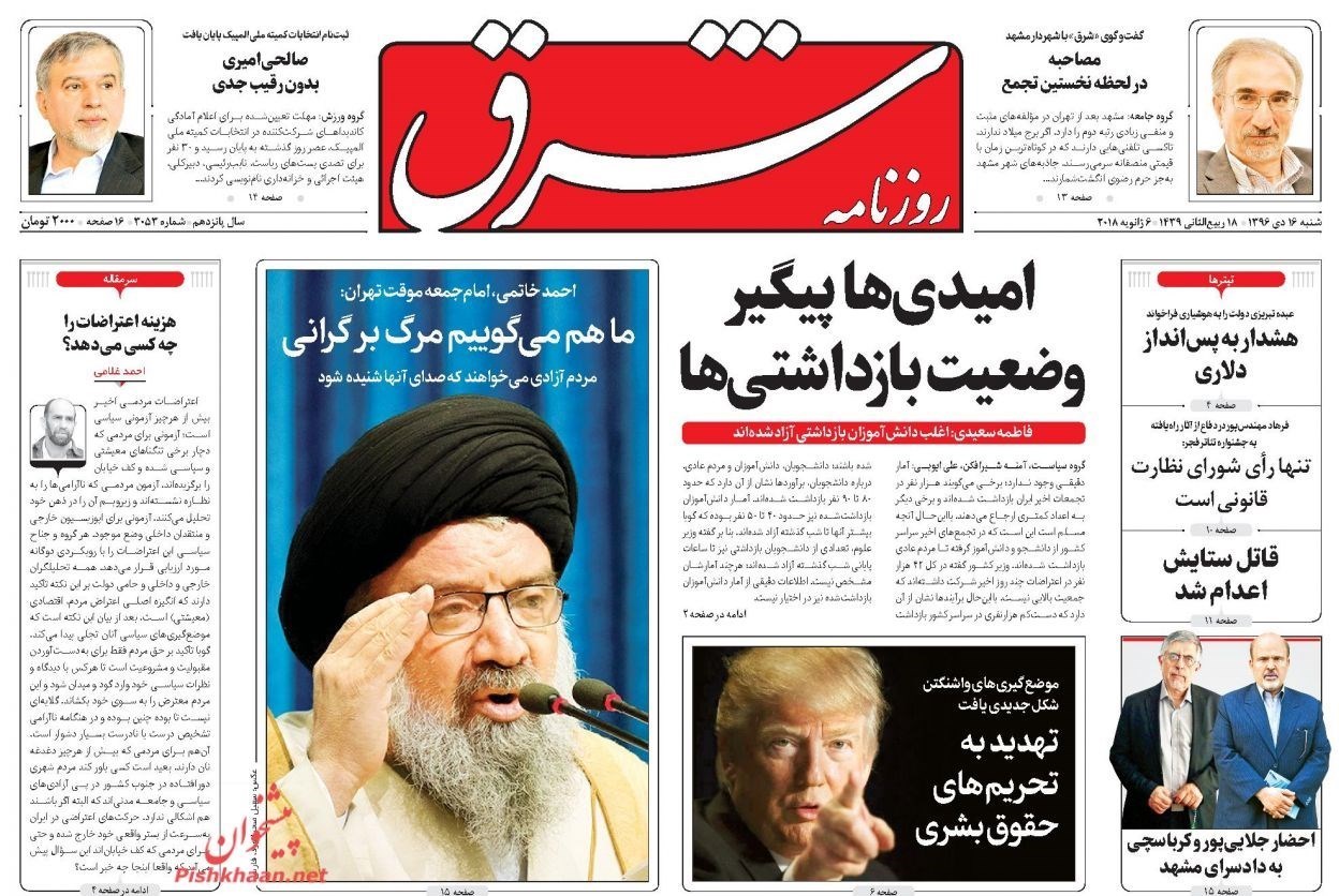 تصاویر صفحه روزنامه‌های شنبه 16 دی