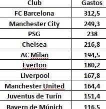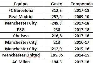 بارسلونا در فصل جاری هم بیشتر از تیمهای منچسترسیتی و پاریسنژرمن خرج کرده است که به ترتیب 249.3 میلیون یورو و 238 میلیون یورو صرف خرید بازیکنان جدید کردهاند.
