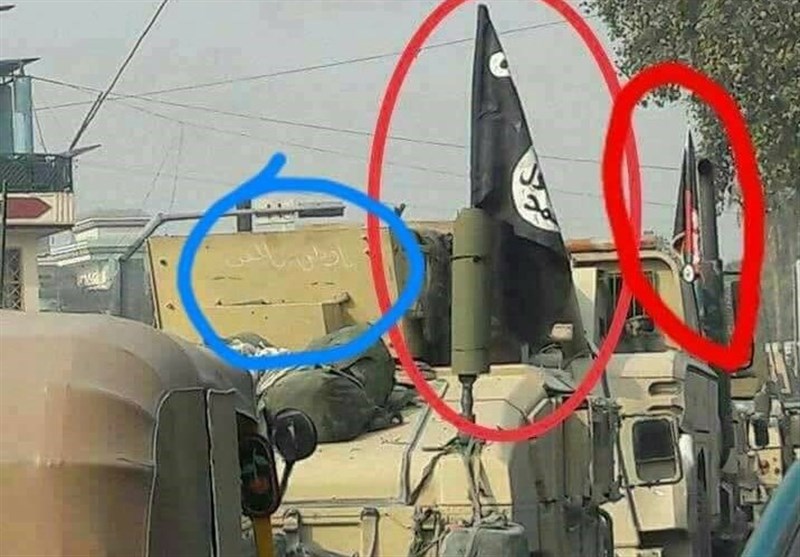 به گزارش دفتر منطقهای خبرگزاری تسنیم به نقل از «اطلاعات روز»، وزارت دفاع افغانستان در توضیح درباره برافراشته شدن پرچمهای گروه تروریستی داعش بر خودروهای زرهی ارتش این کشور اعلام کرد نیروهای افغان پس از درگیری با اعضای داعش در ولایت «ننگرهار» در شرق افغانستان و شکست نیروهای این گروه تروریستی برای ابراز شادمانی خود این پرچمها را بر وسایل نقلیه خود نصب کرده بودند.