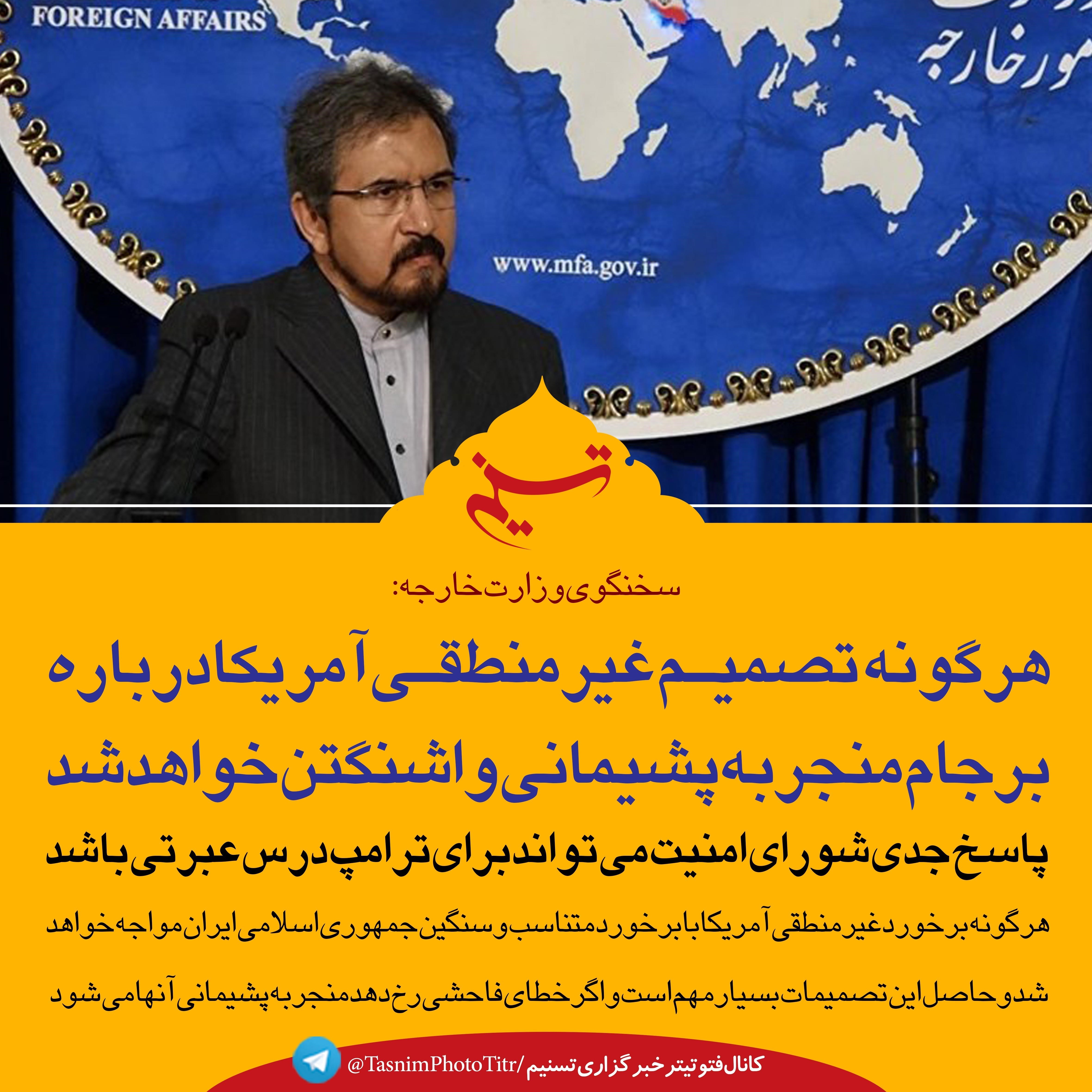 فتوتیتر/ قاسمی: هرگونه تصمیم غیرمنطقی آمریکا درباره برجام منجر به پشیمانی واشنگتن خواهد شد