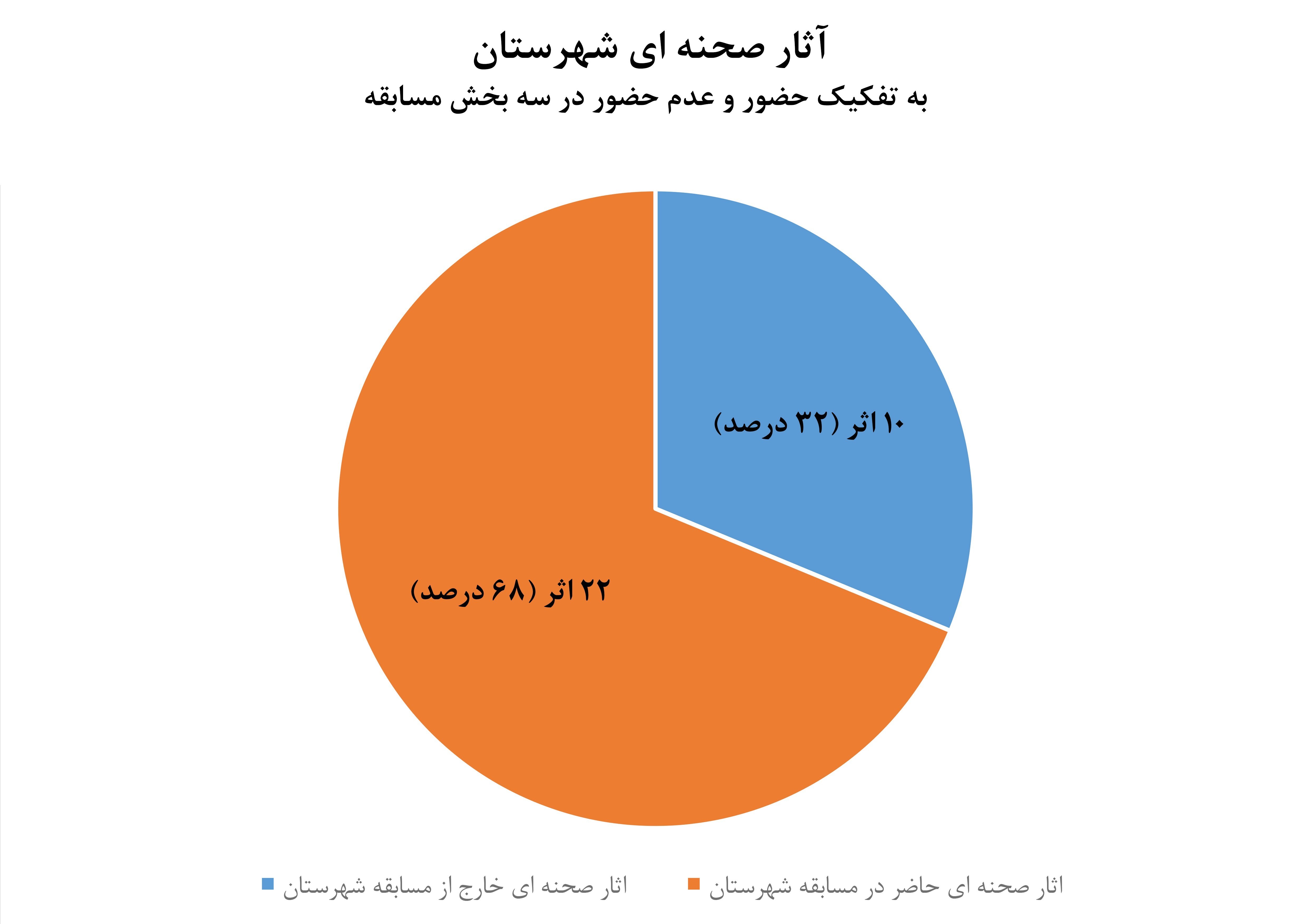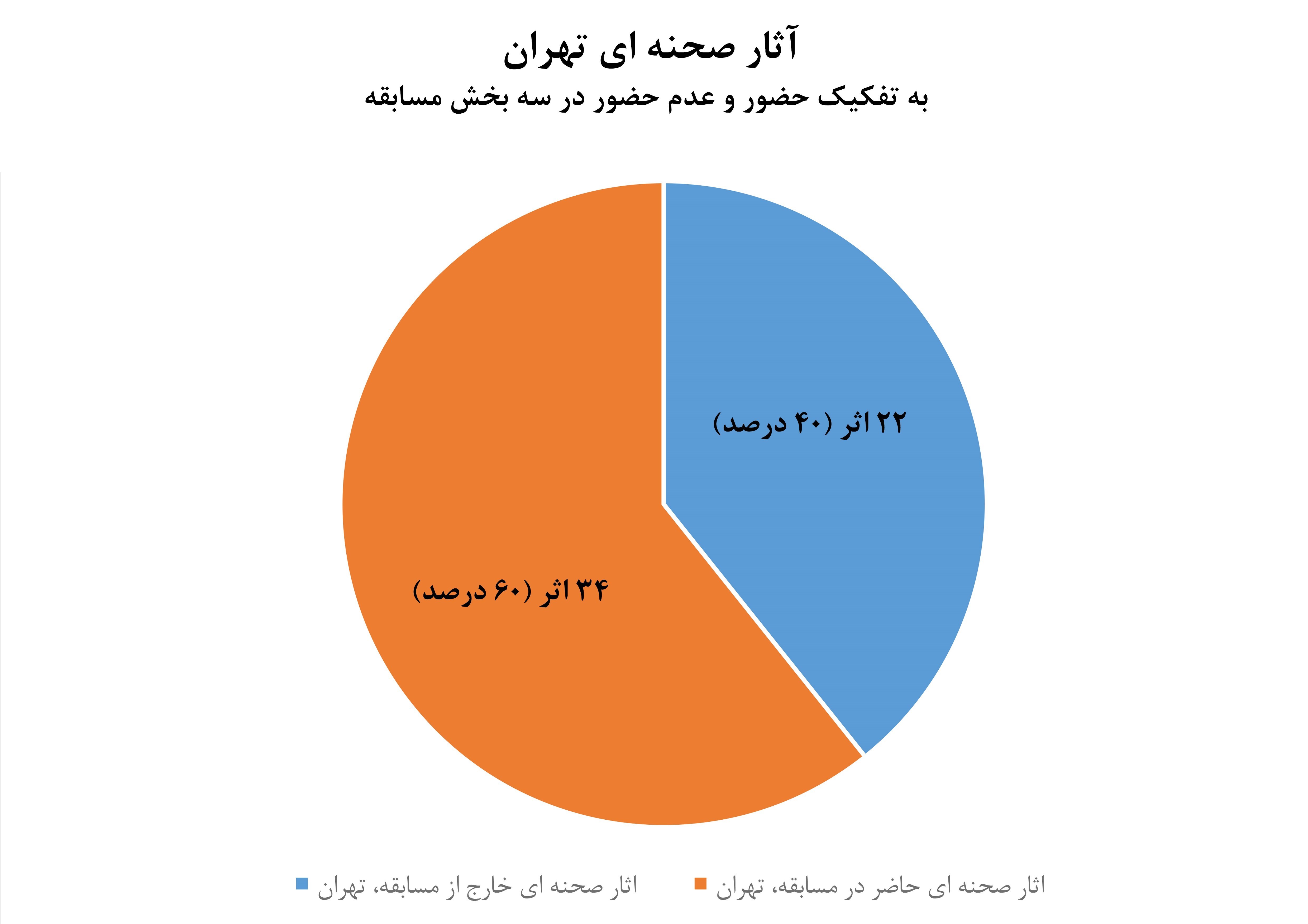 نمودار بعدی نشان میدهد از 32 اثر بخش غیرتهرانی جشنواره 22 اثر وارد بخش مسابقه شده است و 10 نمایش به شکل جنبی روی صحنه میرود.