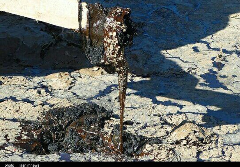 در حوضچههای نگهداری آب این چاهها نیز مواد نفتی چسبنده همراه با آب پمپاژشده بیرون آمده و روی هم انباشتهمیشود.