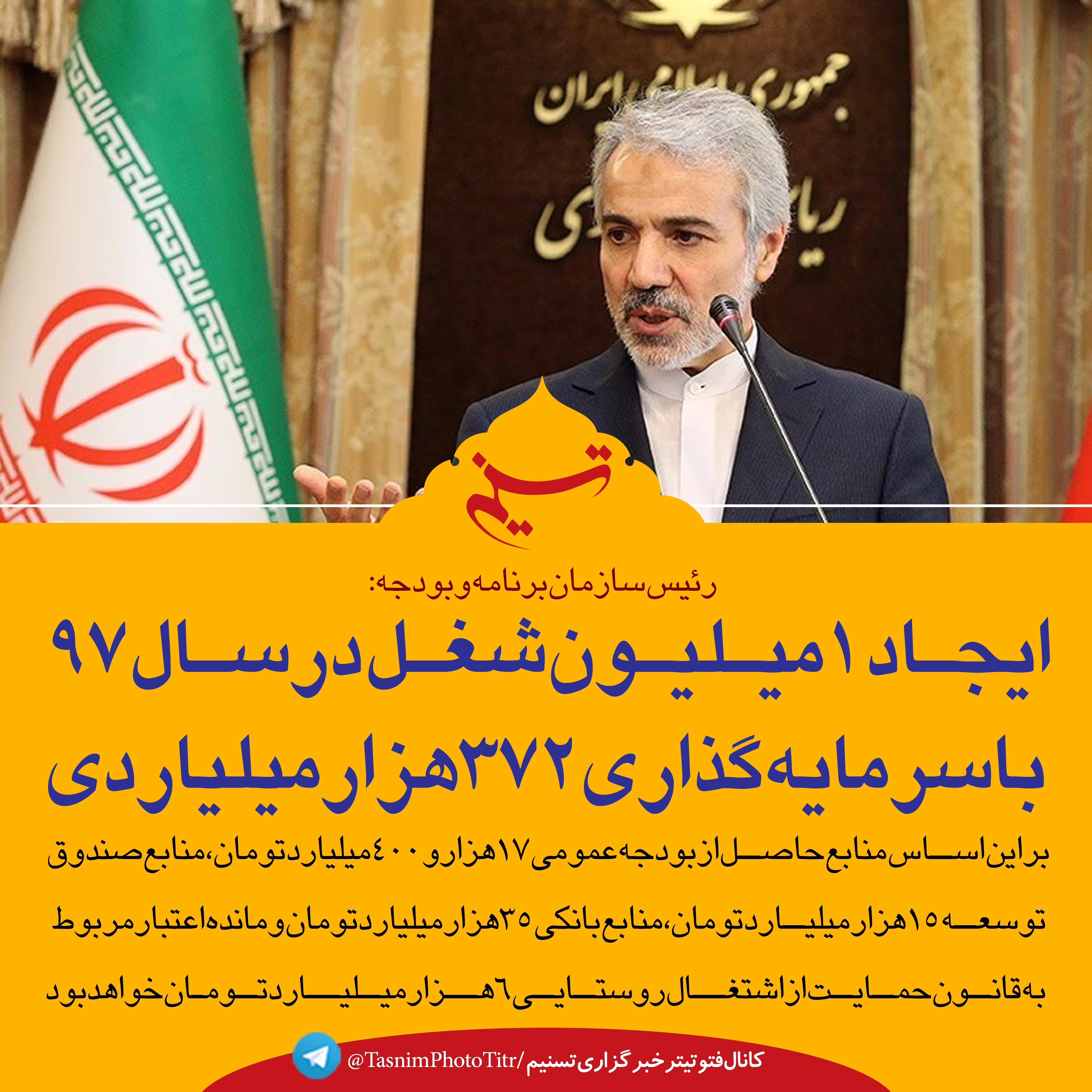 فتوتیتر/نوبخت : ایجاد 1 میلیون شغل در سال97 با سرمایه‌گذاری 327 هزار میلیاردی