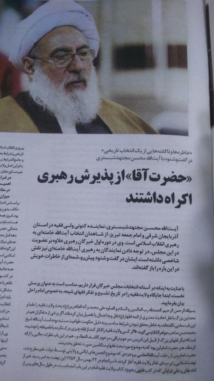 آیتالله مجتهد شبستری نماینده آذربایجان شرقی در خبرگان رهبری و از شاگردان امام راحل درباره اکراه رهبر انقلاب از پذیرش مسئولیت میگوید "خاطرم هست آقا پیش از رأیگیری پشت تریبون رفتند و فرمودند «من آمادگی ندارم و قبول نمیکنم» و کمی هم از اینکه برخلاف میل ایشان این چنین مسئولیت سنگینی را به دوششان قرار میدهیم ناراحت بودند".