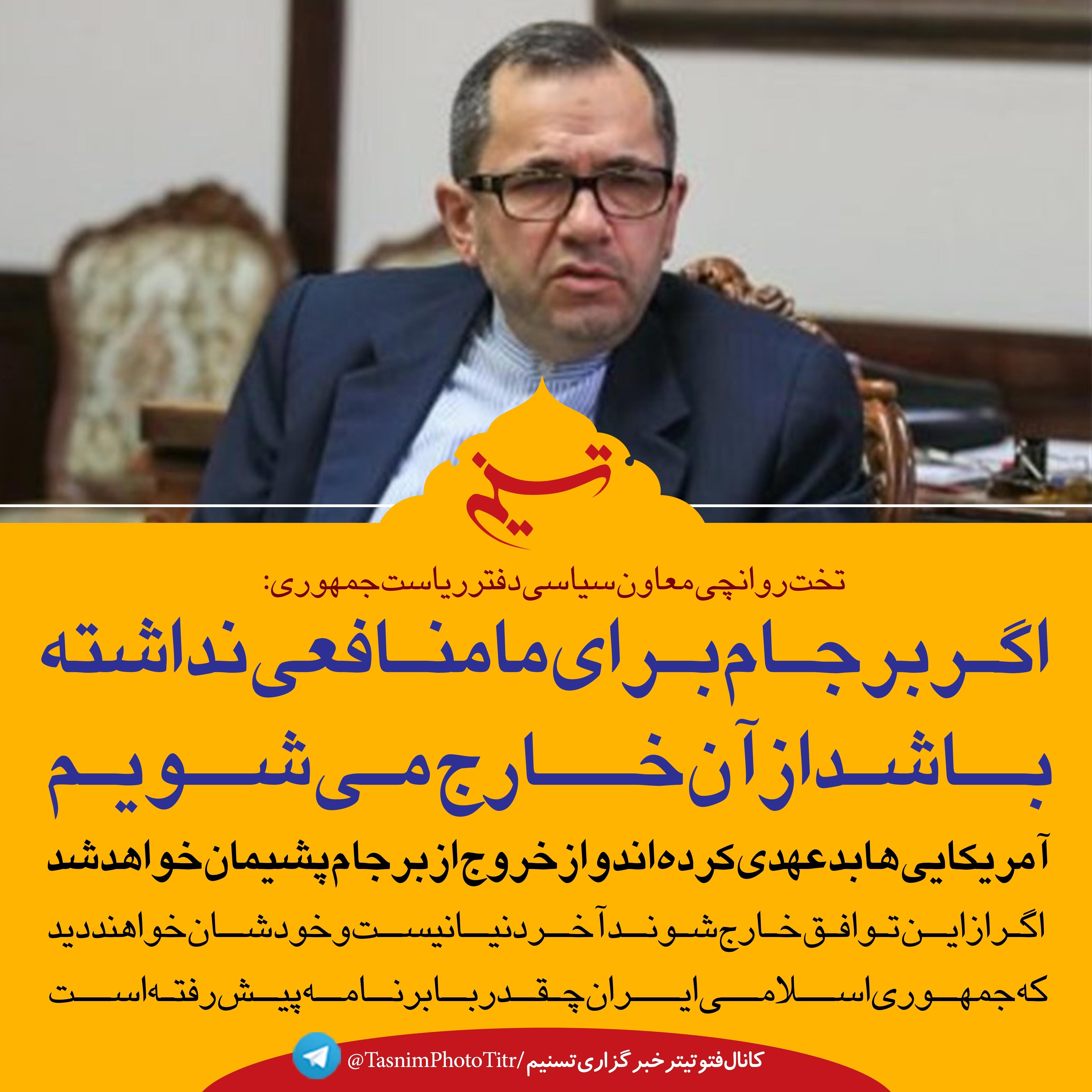 فتوتیتر/تخت‌روانچی:اگر برجام منافعی نداشته باشد از آن خارج می‌شویم