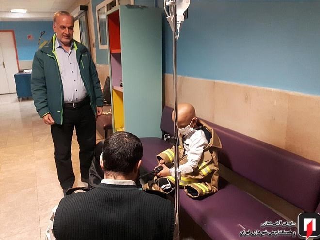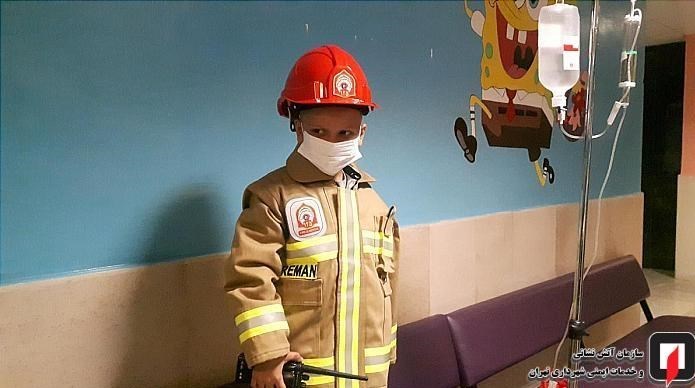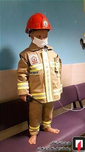 به گزارش گروه اجتماعی باشگاه خبرنگاران پویا؛ عصر روز گذشته محمود داداشی پدر شهید امیرحسین داداشی (شهید حادثه پلاسکو) با حضور در بیمارستان کودکان شهید بهرامی، لباس کامل عملیات آتشنشانی را بر تن کودک هفت سالهای به نام ابوالفضل کرد.