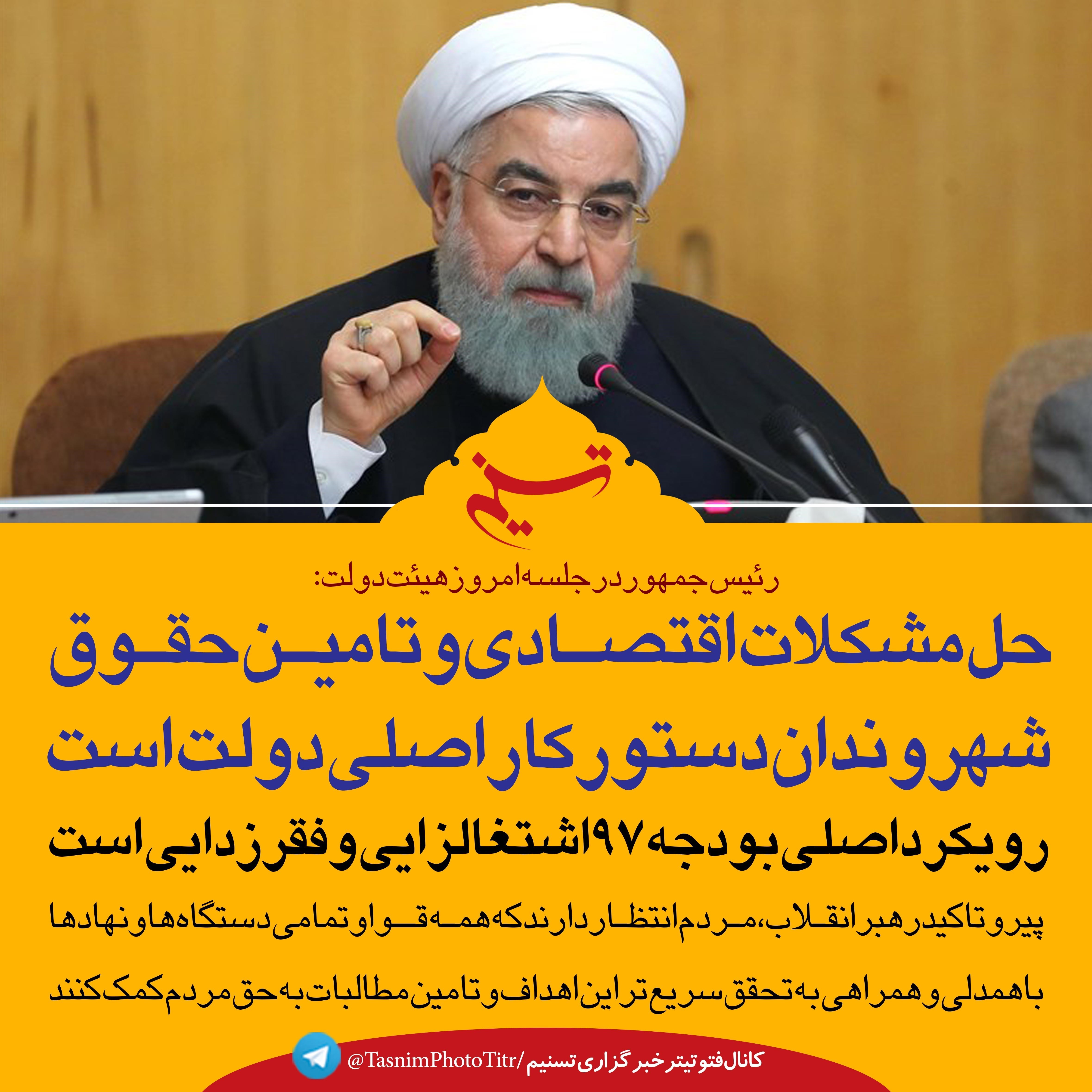 فتوتیتر/روحانی:حل مشکلات اقتصادی و تامین حقوق شهروندان دستور کار اصلی دولت است