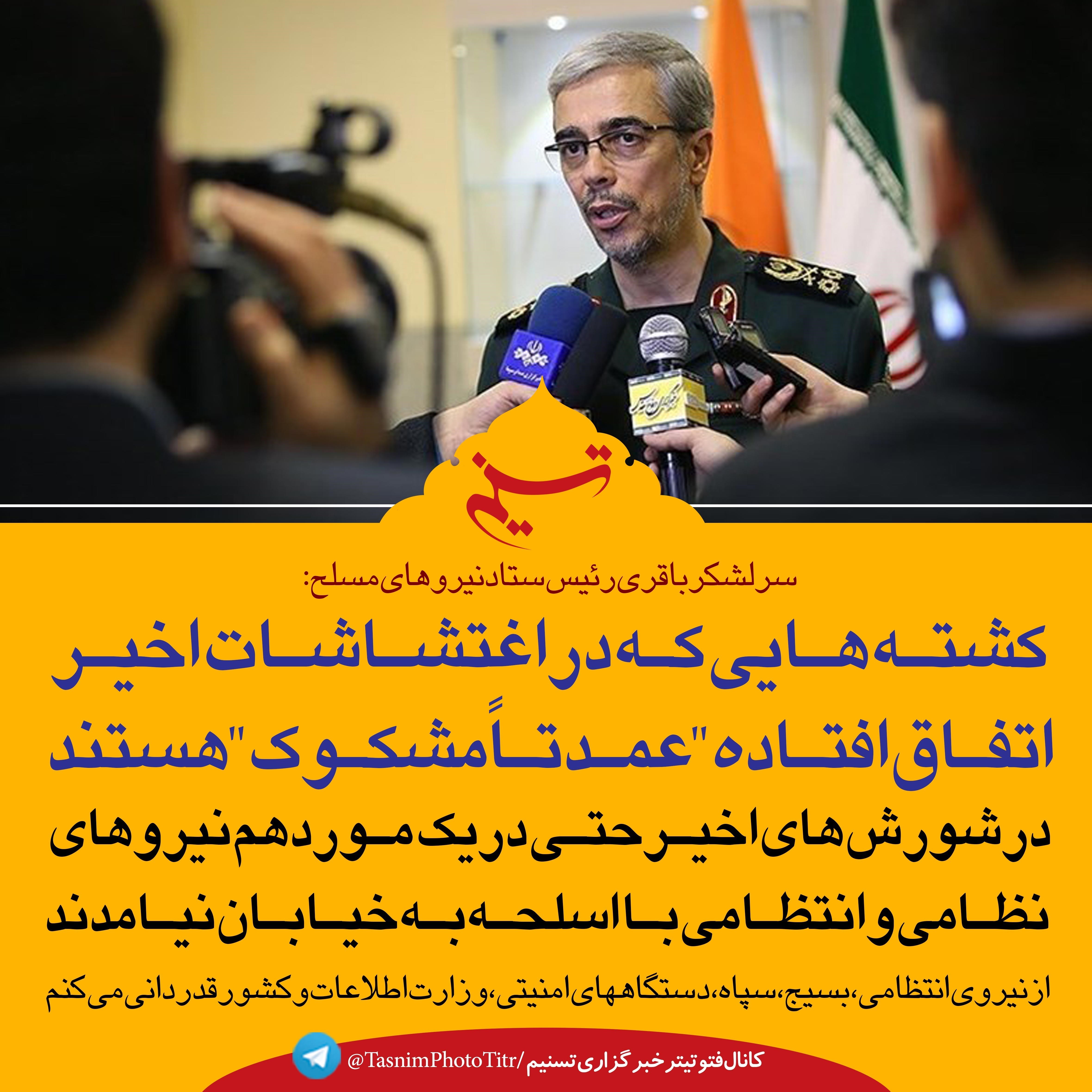 فتوتیتر/سرلشکر باقری:کشته‌هایی که در اغتشاشات اخیر اتفاق افتاده "عمدتا مشکوک" هستند