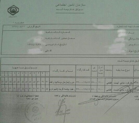 این اظهارات در حالی بود که پیمانکار مربوطه در سال‌های 93، چند ماهی از سال 94 و 95 بیمه پدرم را پرداخت کرده است و چند سال دیگر را پرداخت نکرده که جای سؤال است اگر پدرم کارگر وی نبوده پس چرا در سال‌های مذکور حق بیمه را پرداخت کرده است؟!