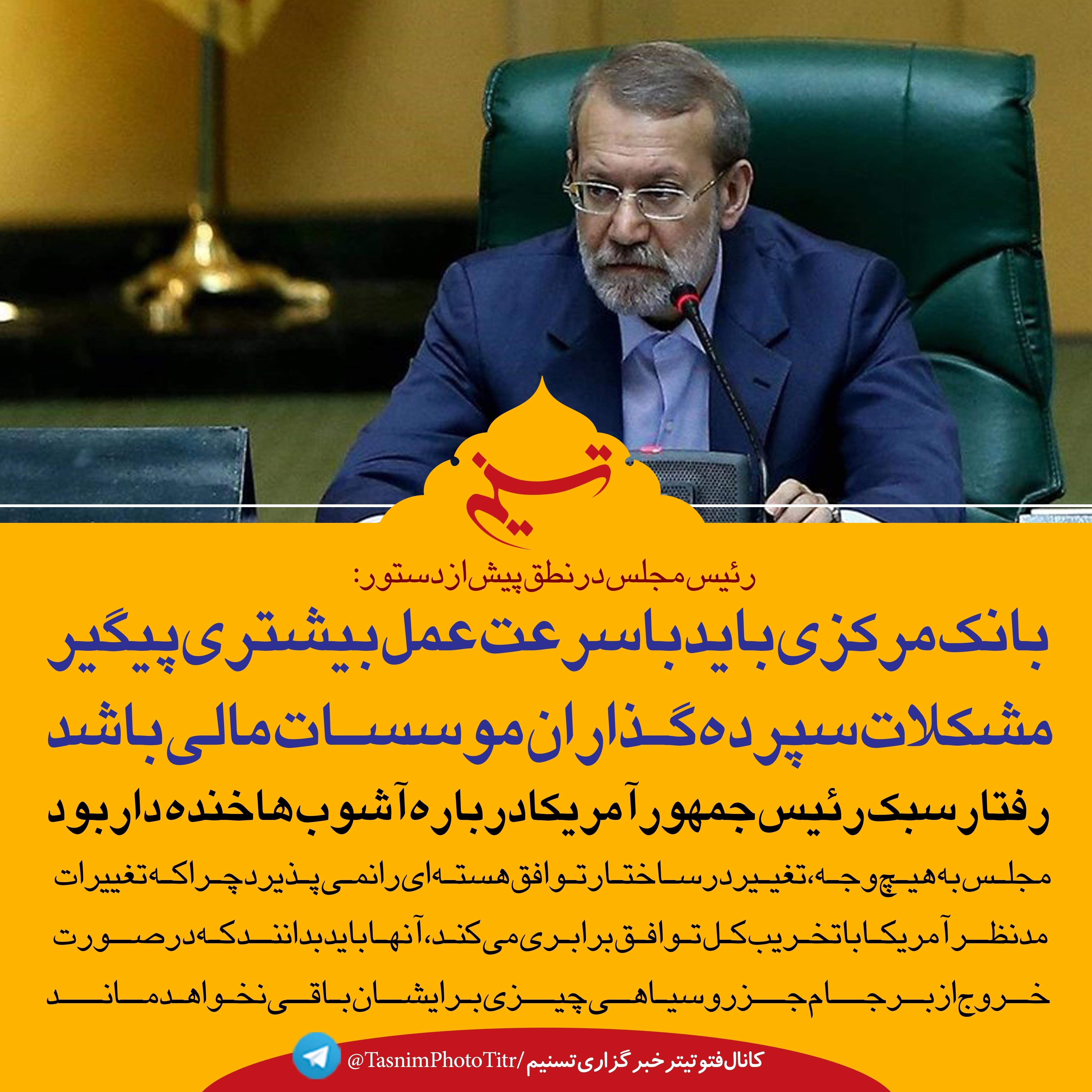 فتوتیتر/لاریجانی:بانک مرکزی باید با سرعت عمل بیشتری پیگیر مشکلات سپرده گذاران موسسات مالی باشد