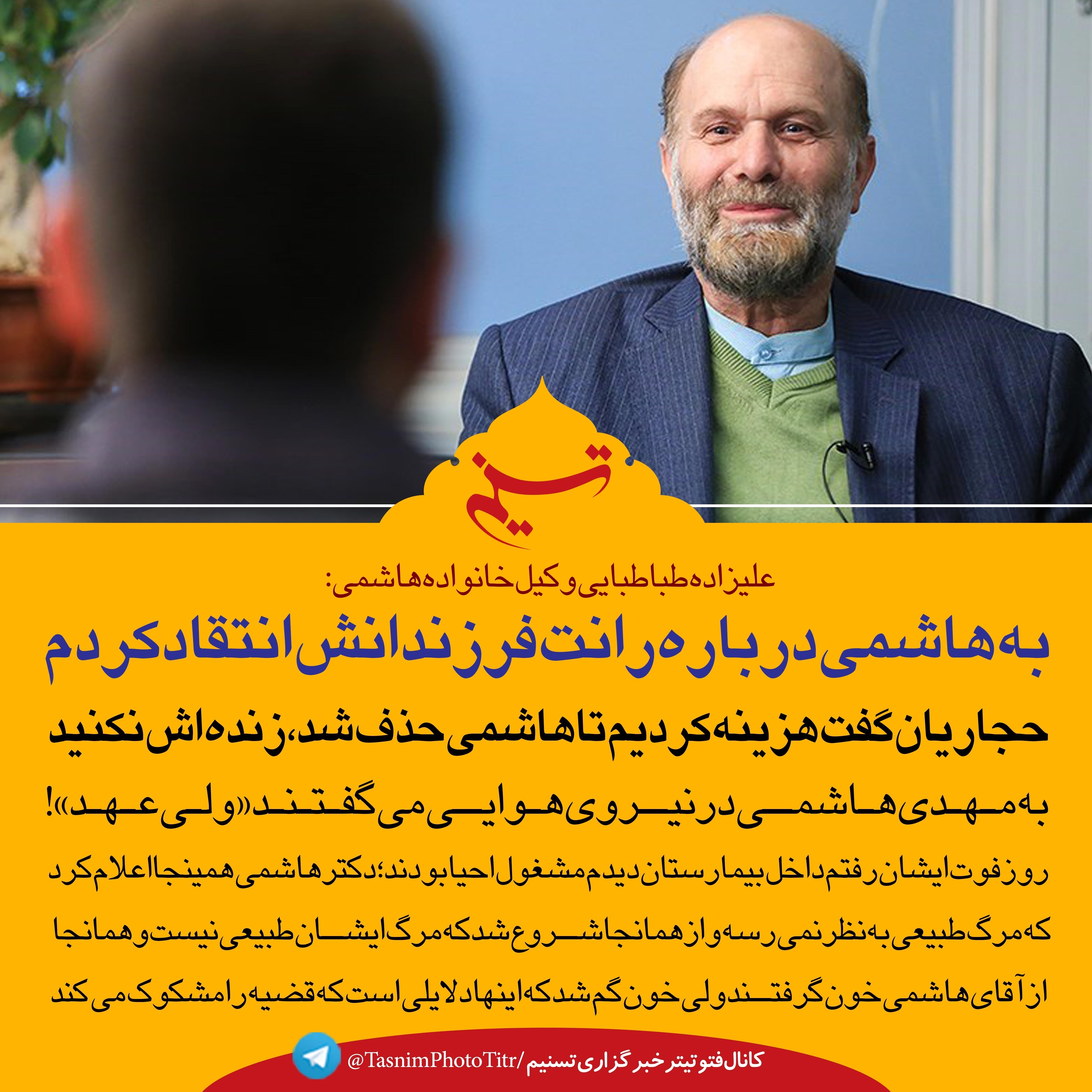 فتوتیتر/وکیل خانواده هاشمی:به هاشمی درباره رانت فرزندانش انتقاد کردم