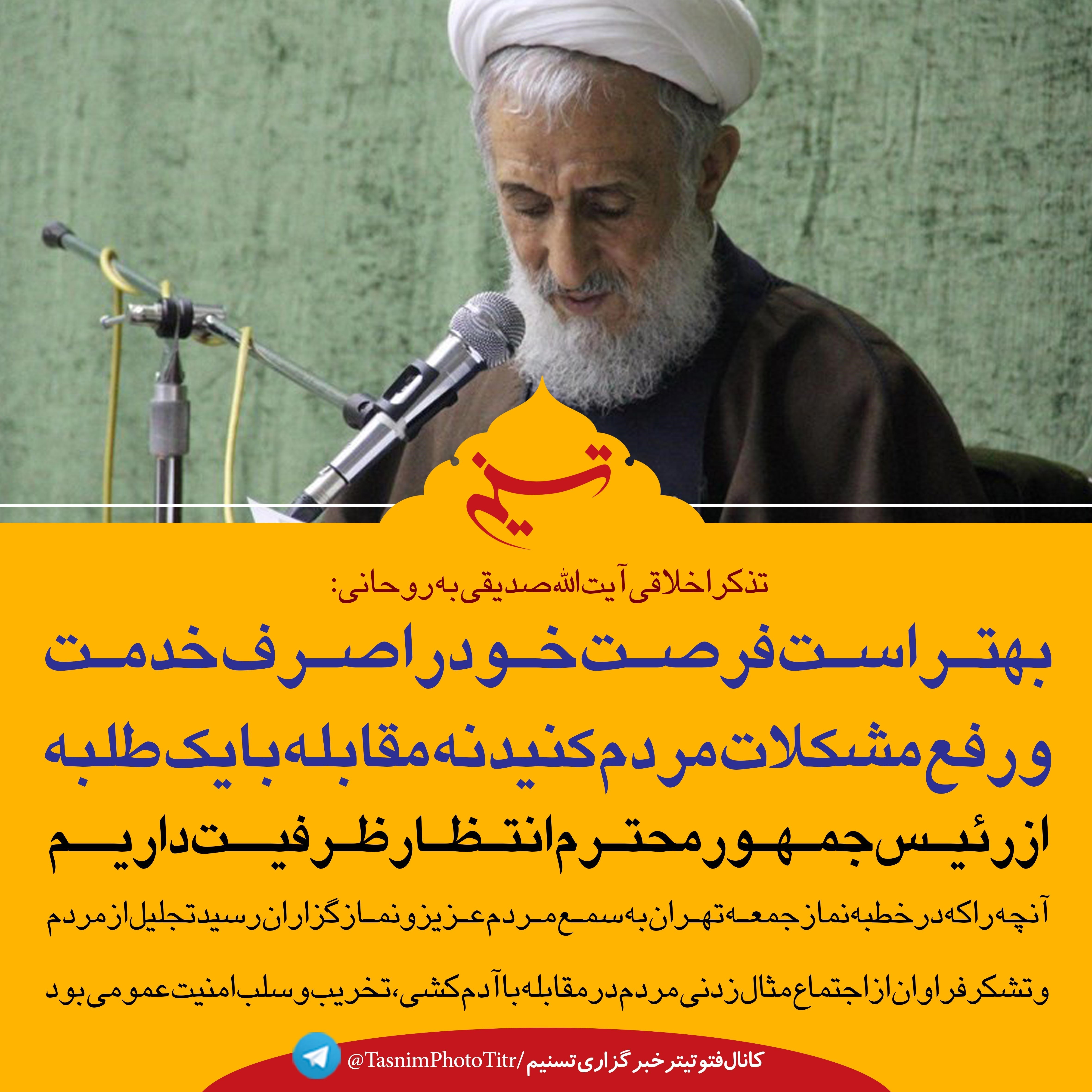 فتوتیتر/ تذکر اخلاقی آیت الله صدیقی به روحانی
