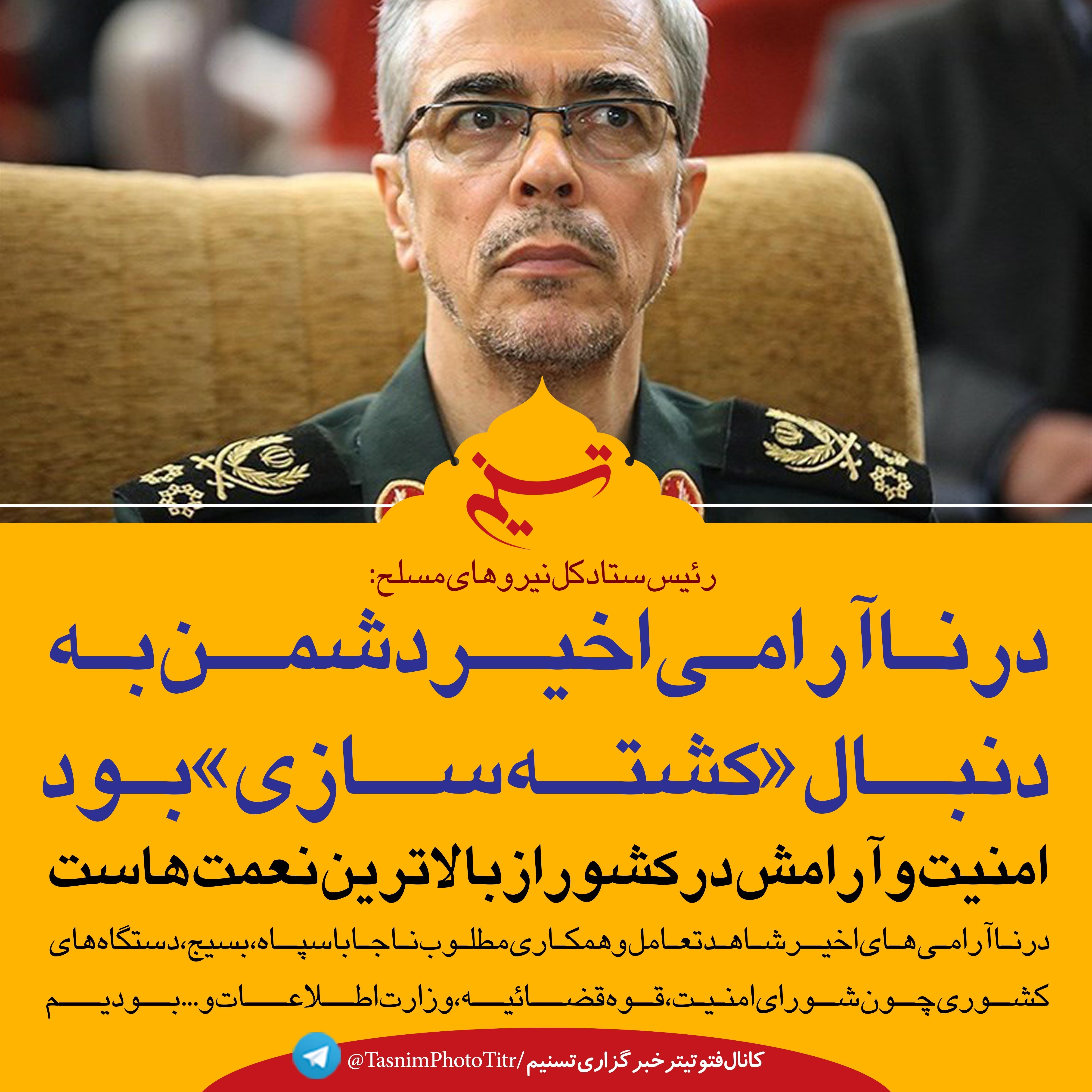 فتوتیتر/ سرلشکرباقری: در ناآرامی اخیر دشمن به دنبال «کشته‌سازی» بود