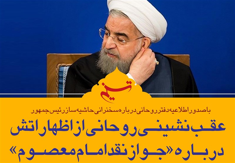 دفتر رئیس‌جمهور ضمن تکذیب انتساب این جمله به رییس‌جمهور که "امام زمان(عج) هم قابل نقد است"، تأکید کرد: باور و اعتقاد به عصمت انبیاء و ائمه معصومین(ع) از مسلمات قطعی تشیع است.
