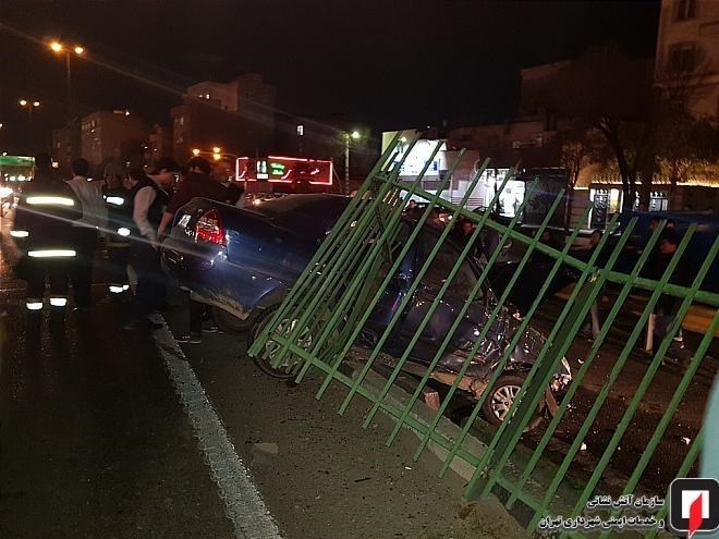 امیر دارایی؛ فرمانده گروه نجات آتشنشانی تهران درباره جزئیات این حادثه اظهار کرد: پس از رسیدن به محل حادثه بلافاصله به بازدید و بررسی محل پرداختیم که مشخص شد راننده بیست و هشت ساله بر اثر برخورد خودروی تیبا با نردهها داخل اتاقک آن گرفتار و همچنین از ناحیه دست و صورت دچار خراشیدگی شده بود.