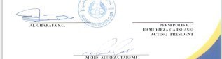 همان طور که در تصویر زیر ملاحظه میکنید توافق سه جانبه الغرافه و پرسپولیس و طارمی نهایی و جهت امضای سرپرست باشگاه پرسپولیس به این باشگاه ارسال شد. ضمن اینکه باشگاه الغرافه پس از عدم توافق خیمینز بازیکن فلسطینی این تیم برای توافق و جدایی، او را از لیست خارج کرد و پول وی را میپردازد.