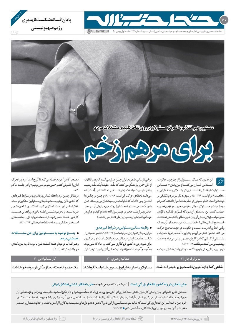 به گزارش گروه سیاسی خبرگزاری تسنیم به نقل از پایگاه اطلاعرسانی دفتر حفظ و نشر آثار حضرت آیتالله خامنهای، صدوهفدهمین شماره خط حزبالله با یادداشتی باعنوان «برای مرهم زخم» که درباره دستور رهبر انقلاب به تمرکز مسئولان بر روی نقاط کلیدی مشکلات مردم است، منتشر شد.