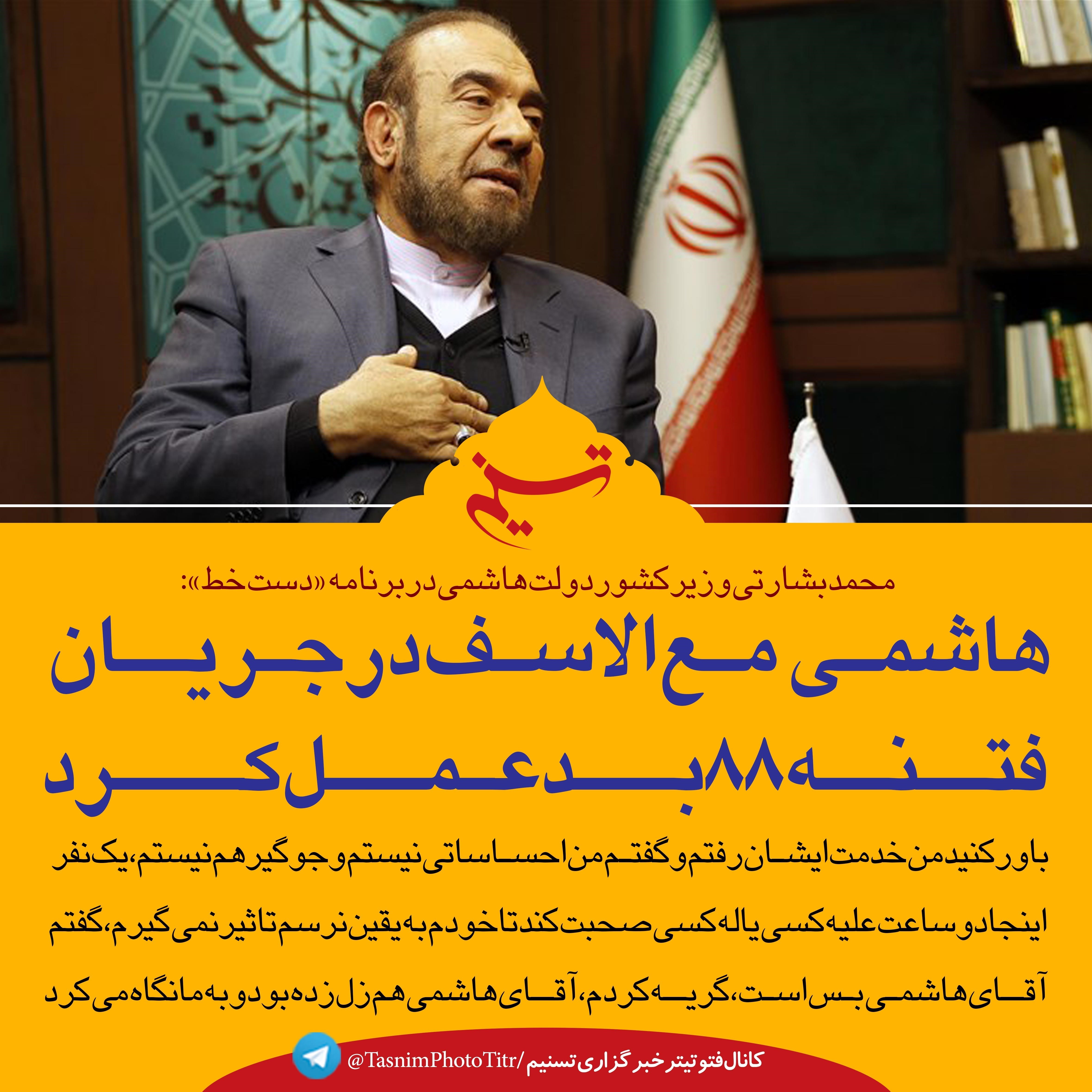 فتوتیتر/بشارتی : هاشمی مع الاسف در جریان فتنه 88 بد عمل کرد